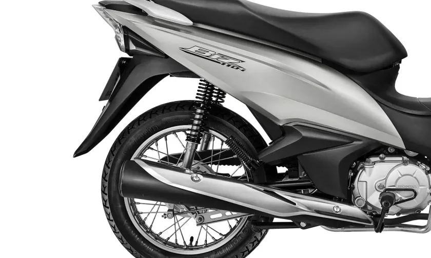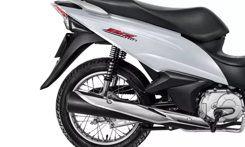 Suspensão Traseira/Curso: Convencional (dois amortecedores) / 85 mm