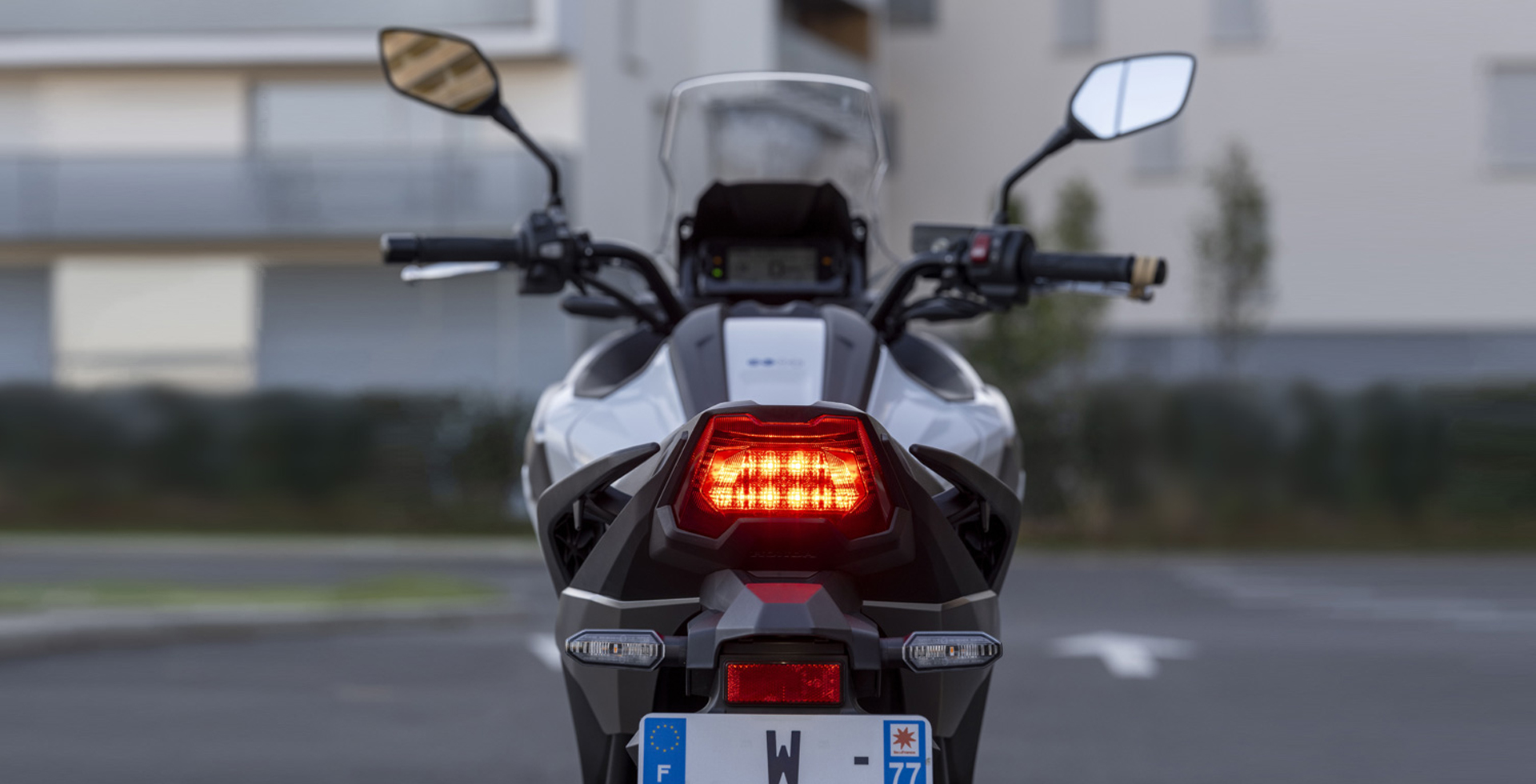 Com 802 mm, a altura do assento da nova NC 750X foi reduzida em 30 mm em relação à versão anterior e, combinada ao guidão mais elevado, garante uma posição de pilotagem mais vertical e confortável, além de aumentar a visibilidade do piloto.